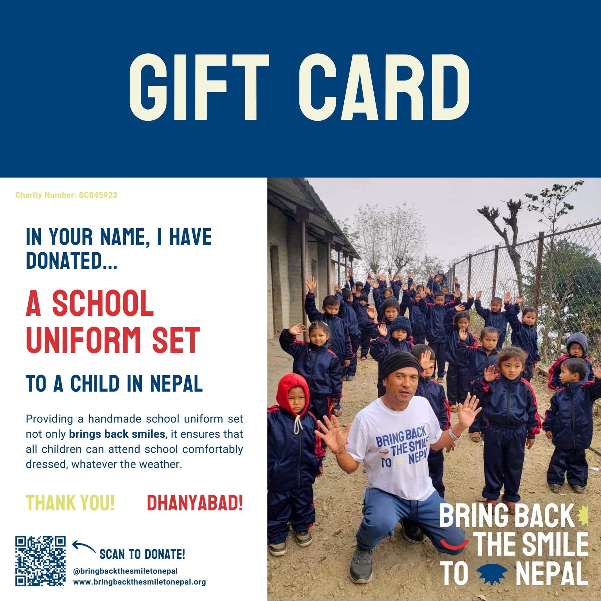 This gift provides a handmade school uniform set, created by our talented team in Nepal. It helps children attend school comfortably dressed, whatever the weather, and feel proud to be part of their community.